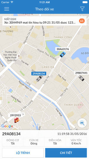 Các thông tin chi tiết như mã số xe, số điện thoại liên lạc, trạng thái xe cùng các thống kê cơ bản nhất sẽ hiển thị đầy đủ. Nhờ đó mà người quản lý sẽ chủ động hơn cho công việc của mình và xử lý các tình huống khẩn cấp một cách nhanh nhất với vị trí mà thiết bị định vị được. Lộ trình và vận tốc xe được giám sát chặt chẽ, các tài xế sẽ được cảnh báo khi có các hành vi không chuẩn mực.