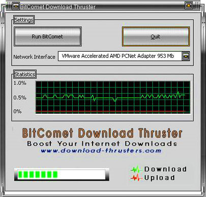 BitComet Download Thruster là một module tăng tốc độ download, sử dụng công nghệ streaming cho tốc độ băng tải đến một mức độ chưa từng thấy.