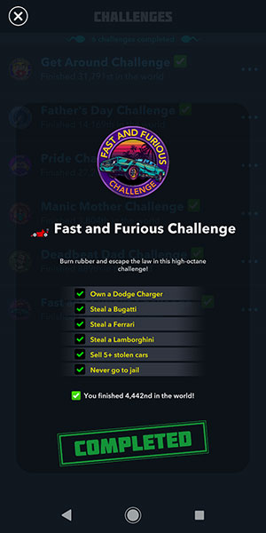 Một trong những chiếc xe nổi tiếng nhất của Dom Toretto trong loạt phim Fast and Furious là Dodge Charger R/T năm 1970 và người chơi cũng cần sở hữu một chiếc trong phần Thử thách Fast and Furious của BitLife. Chúng khá phổ biến trong các đại lý ô tô và trên đường, vì vậy đây sẽ là một trong những yêu cầu dễ dàng hơn.