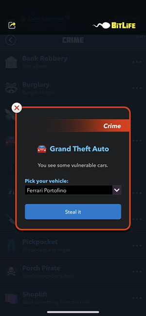 Sau Dodge Charger, mục tiêu chính mọi người phải làm là mua được những chiếc siêu xe Bugatti, Ferrari và Lamborghini. Kiếm tiền gần như là nhiệm vụ quan trọng nhất bởi những chiếc xe trên đều vô cùng đắt tiền và mọi người sẽ phải làm việc cật lực vì chúng. Trong mục Crime, chọn Grand Theft Auto sẽ giúp việc tìm kiếm những chiếc xe hiếm như Bugatti trở nên dễ dàng hơn.