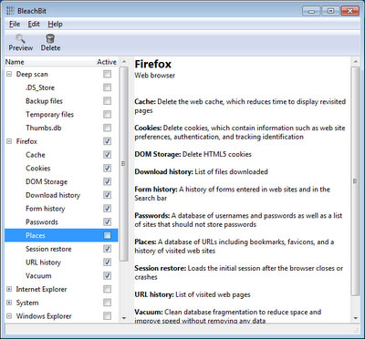 BleachBit có thể tối ưu hóa bằng việc dọn dẹp các file vụn nằm rải rác trên đĩa cứng do chúng được tạo bởi các trình duyệt như Firefox, Internet Explorer, Opera…cùng các ứng dụng Adobe Reader, Flash, Microsoft Office, Yahoo! Messenger, WinRAR, Windows Media Player….và rất nhiều ứng dụng phổ biến mà bạn đã cài đặt trên máy.