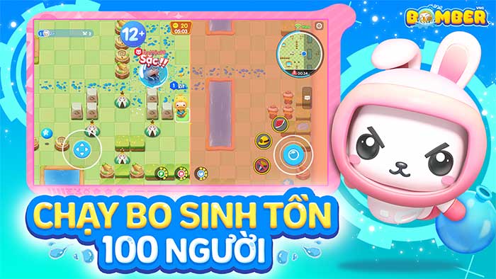 Bomber VNG cho iOS mang đến chế độ battle royale, chạy bo sinh tồn có tên Đấu Xếp Hạng Sinh Tồn 100 người hoàn toàn mới. Tại đây, 100 người chơi tự tin về khả năng của mình sẽ cạnh tranh cùng lúc tên một bản đồ rộng lớn, với mục tiêu hạ gục đối thủ và trở thành người cuối cùng còn sống sót. Tư duy chiến thuật kết hợp với điều khiển nhanh lẹ để làm càng nhiều đối thủ sặc nước càng tốt sẽ mang tới chiến thắng vinh quang cho game thủ.