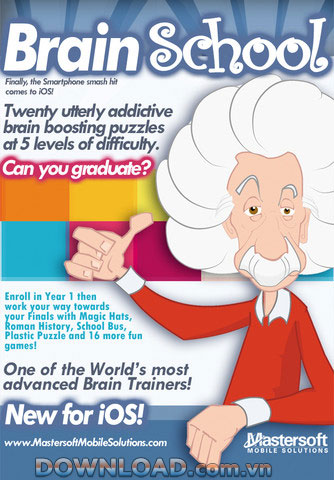 Brain School for iOS bao gồm 20 trò chơi trí tuệ khác nhau và hơn 100 level hấp dẫn giành cho iPhone/iPad.