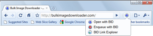 Tiện ích mở rộng này thêm một nút trong thanh công cụ của Google Chrome, cho phép bạn mở trang hiện tại với BID, thêm trang hiện tại với danh sách công việc BID Queue Manager hoặc mở trang hiện tại với BID Link Explorer. Vào trang lựa chọn của tiện ích mở rộng để bật menu item hoặc tắt chúng.