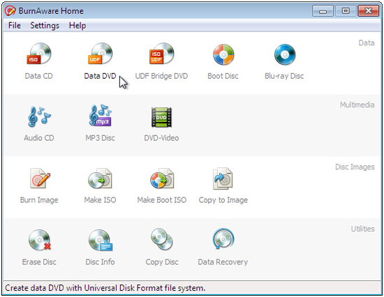 BurnAware Home là một phần mềm burn đĩa CD, DVD, Blu-ray tối thượng, một tiện ích cần thiết cho các máy trạm gia đình hoặc các máy tính di động. Chương trình gồm có các công cụ burn đĩa giúp bạn có thể copy ảnh số, tài liệu, game, các đoạn video và nhạc vào CD và DVD một cách dễ dàng. Với BurnAware Home bạn còn có thể biên dịch, burn các đĩa khởi động và image.