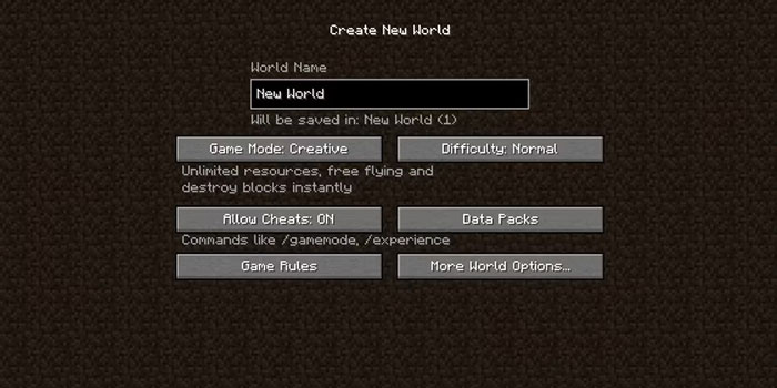 Tuy nhiên, trong tab Create New World, người chơi sẽ chỉ có thể truy cập chế độ sinh tồn, sáng tạo và hardcore. Chế độ phiêu lưu và chế độ khán giả có thể được truy cập khi người chơi đã tạo xong một thế giới. Sau đó, chỉ cần nhập lệnh /gamemode trong box chat và chọn adventure hoặc spectator để áp dụng. Chế độ khán giả cũng có sẵn ở cuối thời gian chơi chế độ hardcore, nếu người chơi chết.