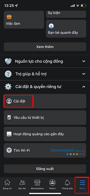 Bước 2: Vuốt xuống và chọn Cài đặt & Quyền riêng tư > Cài đặt.