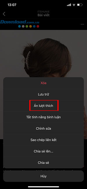 Tùy chọn ẩn phản ứng trên mỗi bài đăng riêng biệt có thể sẽ được tìm thấy bằng cách nhấn vào biểu tượng dấu ba chấm trên bài đăng.