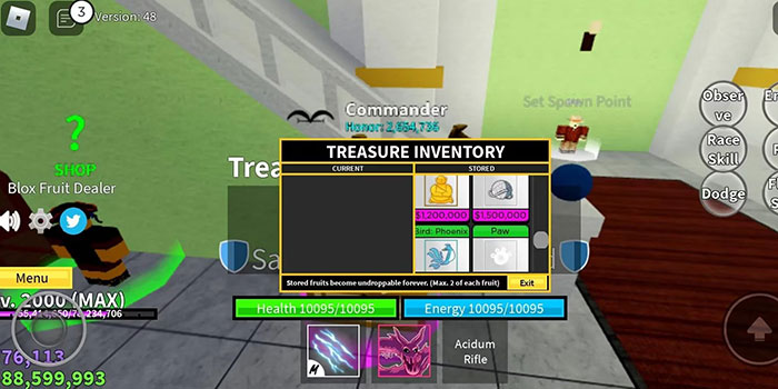 Hiện có 2 rương kho báu để lưu trữ blox fruit trong trò chơi như sau: