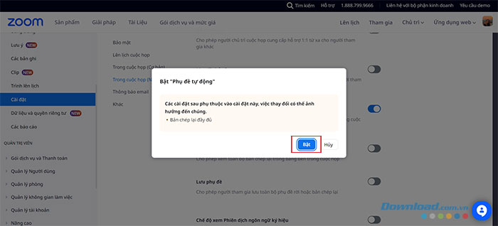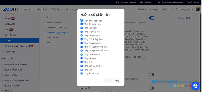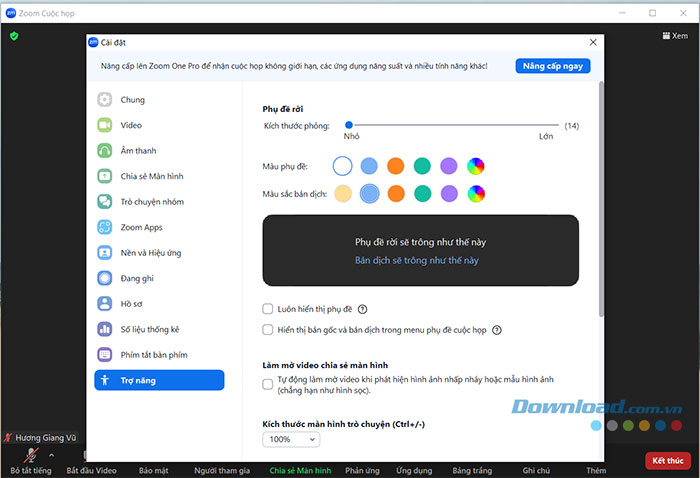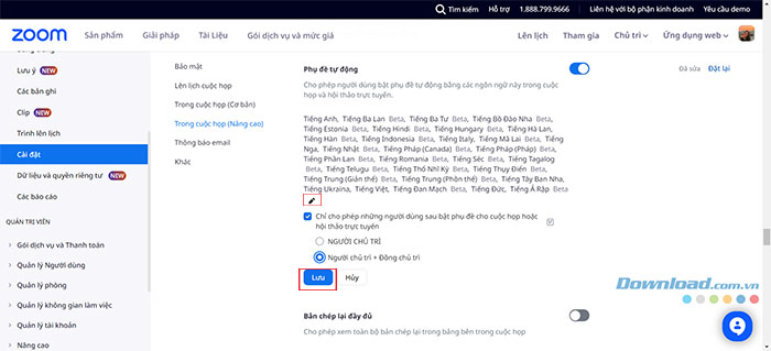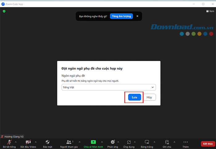 Người dùng có thể nhấn vào Hiển thị phụ đề > chọn Tiếng Việt > ấn Lưu để bật chú thích tự động cho cuộc gọi video trong Zoom.