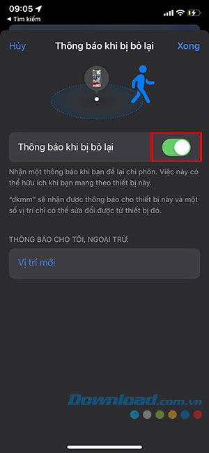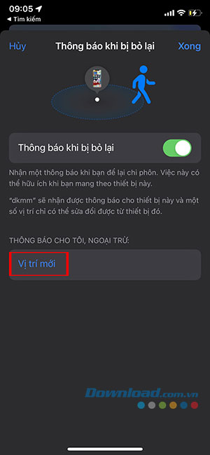 Ngoài ra, người dùng có thể đặt một phạm vi để Apple thông báo ngay khi sắp rời khỏi phạm vi đã chọn. Phạm vi bao gồm Nhỏ, Trung bình và Lớn, chọn một trong số đó và nhấn vào Xong ở góc trên cùng bên phải.