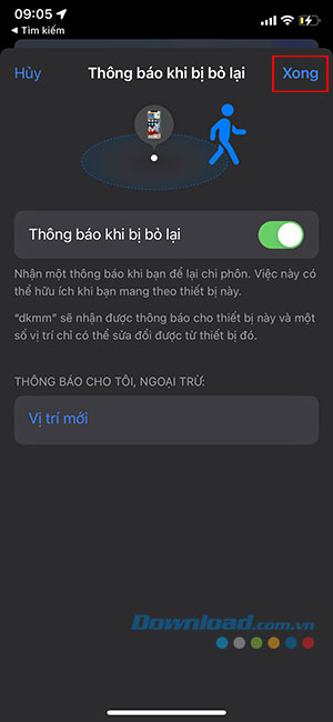 Sau khi đã bật Thông báo khi bị bỏ lại và thiết lập ngoại lệ, mọi người có thể xác nhận những thay đổi này bằng cách nhấn vào Xong ở góc trên cùng bên phải.