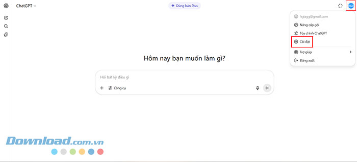 Nhấn vào hồ sơ cá nhân (avatar) ở góc trên cùng bên phải và chọn Cài đặt.