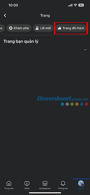 Bước 2: Mở tab Trang đã thích. Tại đây, người dùng sẽ thấy danh sách tất cả các Trang mình hiện đang theo dõi hoặc thích.