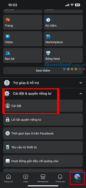 Bước 2: Chạm vào Cài đặt & quyền riêng tư và chọn Cài đặt.