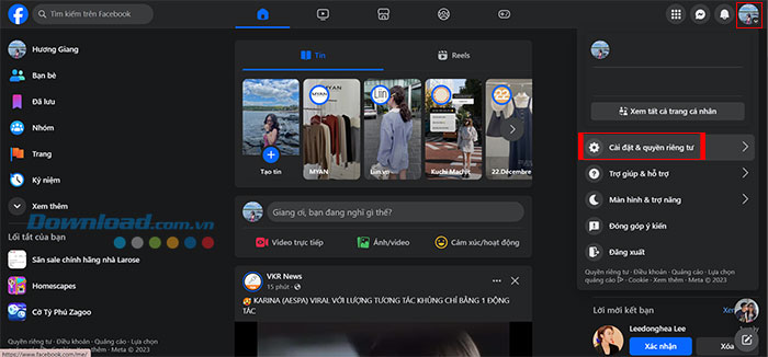 Bước 1: Nhấp vào biểu tượng ảnh đại diện của mình ở góc trên bên phải. Đi tới Cài đặt & quyền riêng tư.
