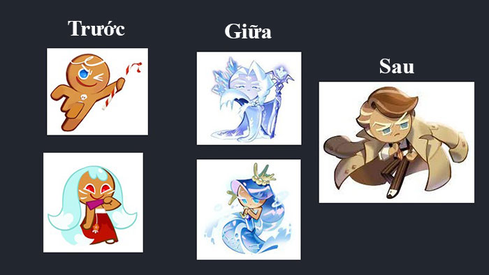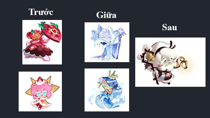 Nhân vật cấp Legendary siêu hiếm - Sea Fairy Cookie và Frost Queen, sẽ ở giữa để được hỗ trợ tốt nhất vì chúng có tỷ lệ hạ gục kẻ địch rất tốt. Cuối cùng, Almond Cookie sẽ ở phía sau vì nó có kỹ năng đặc biệt mà khi sử dụng sẽ khóa mọi kẻ thù lại.