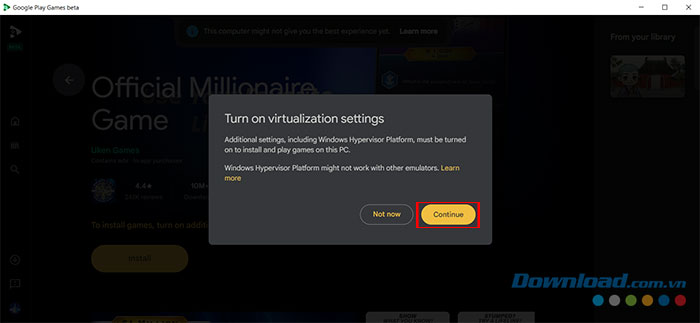 Nếu PC đáp ứng các yêu cầu tối thiểu, người dùng có thể cài đặt Google Play Games Beta trên PC.