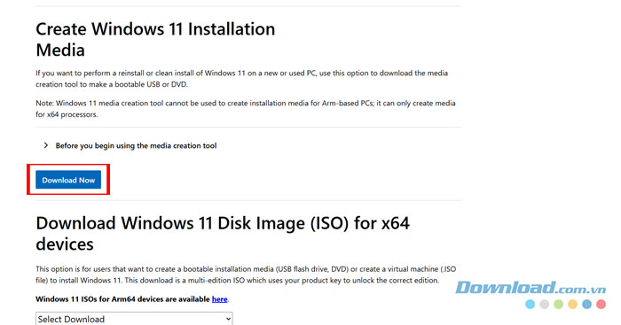 Bước 2: Nhấn nút Download Now để tải công cụ tạo bộ cài.