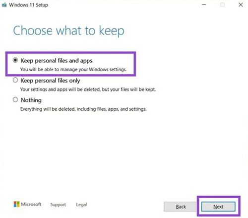 Bước 5: Chọn ngôn ngữ và khu vực rồi làm theo hướng dẫn. Khi được hỏi, hãy chọn Keep personal files and apps. Cuối cùng, đợi quá trình cài đặt hoàn tất.