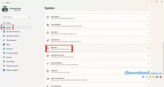 Bước 2: Khởi động lại máy và truy cập vào BIOS bằng cách nhấn F2, F12, Delete hoặc Esc trong lúc máy khởi động. Người dùng cũng có thể vào BIOS từ Recovery > Advanced Startup trong phần Settings.
