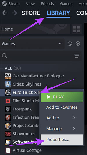 Bước 2: Nhấp chuột phải vào trò chơi mà mọi người muốn quản lý DLC và chọn Properties.