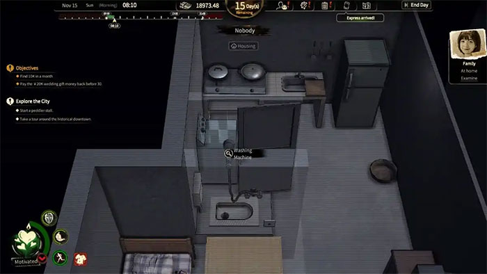 Người chơi có thể tăng mức độ sạch sẽ của mình trong Nobody the Turnaround bằng cách tắm hoặc giặt quần áo.