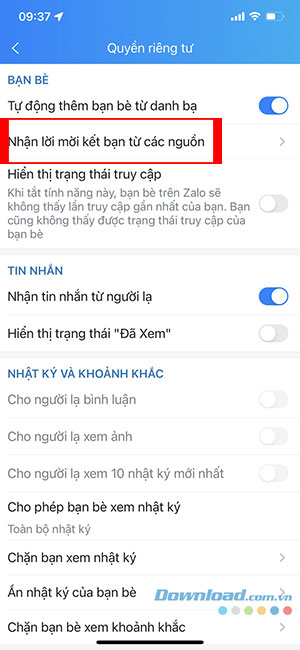 Bước 4: Trong mục Bạn bè, nhấn vào Nhận lời mời kết bạn từ các nguồn.