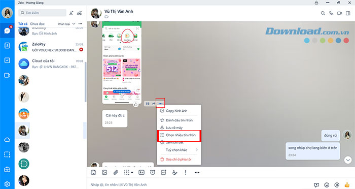 Bước 1: Mở ứng dụng Zalo trên máy tính và chọn một cuộc trò chuyện muốn chia sẻ nhiều tin nhắn.