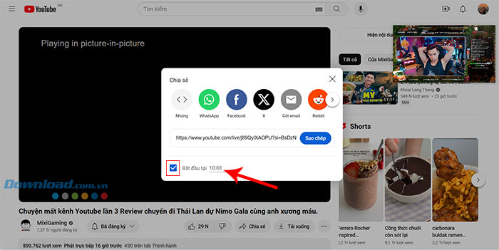 Bước 5: Dán liên kết vào bất cứ nơi nào mong muốn hoặc chọn chia sẻ tới các mạng xã hội khác. Bất kỳ ai mở liên kết tới video Youtube này sẽ bắt đầu xem video vào thời điểm mọi người đã chỉ định.