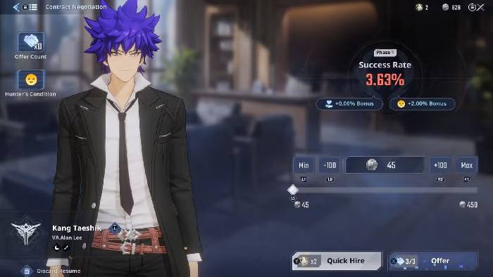 Cơ chế này giống như một mini-game nhỏ với ba lượt đề nghị. Mỗi lượt sẽ hiển thị tỉ lệ đồng ý. Nếu thất bại, người chơi sẽ được hoàn lại một phần Hunter Coin và lượt tiếp theo sẽ tăng thêm tỷ lệ thành công.