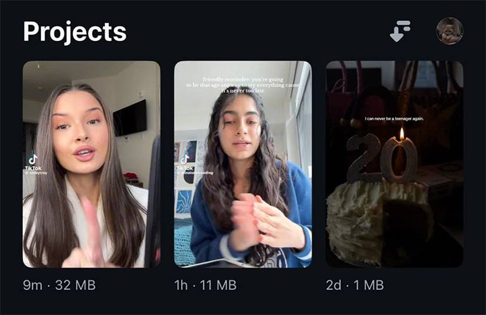 Tại đây, mọi người có thể bắt đầu một video mới hoặc xem lại các dự án đã có và sắp xếp các dự án theo: