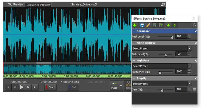 Bước 9: Nhấn vào biểu tượng FX trên đoạn âm thanh để áp dụng hiệu ứng và chuyển cảnh âm thanh.