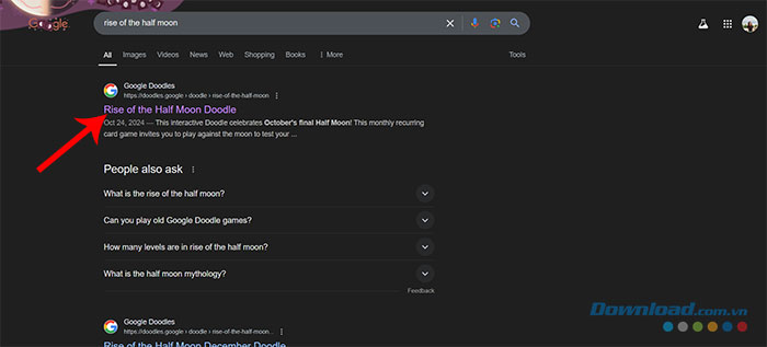 Ngay cả khi Rise of the Half Moon không xuất hiện trên Google Doodles, người chơi vẫn có thể tìm kiếm từ khóa Rise of the Half Moon và chọn kết quả từ Google Doodles để chơi trò chơi này.
