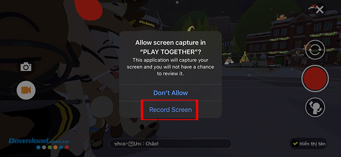 Bước 4: Xác nhận hộp thông báo bằng cách nhấn vào Record Screen/Ghi màn hình.