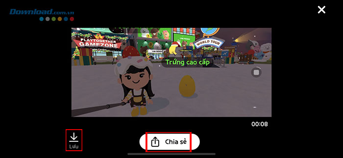 Bước 6: Sau khi đã quay xong, nhấn vào nút đỏ một lần nữa để dừng đoạn video. Sau đó, mọi người có thể chọn Lưu để lưu lại video hoặc Chia sẻ để đăng lên mạng xã hội, gửi cho bạn bè của mình.