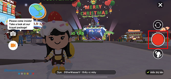 Bước 5: Nhấn nút hình tròn màu đỏ để bắt đầu quay bất kỳ hình ảnh nào mà mọi người mong muốn, từ khung cảnh đảo Kaia dịp Giáng sinh.