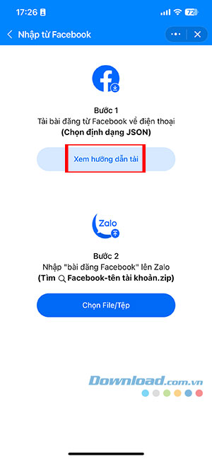 Bước 3: Tiến hành quá trình tải bài đăng từ Facebook về điện thoại (nhấn Xem hướng dẫn tải để tìm hiểu các bước chi tiết).