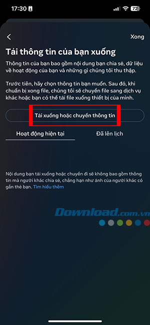 Sau đó, nhấn Tải xuống hoặc chuyển thông tin.