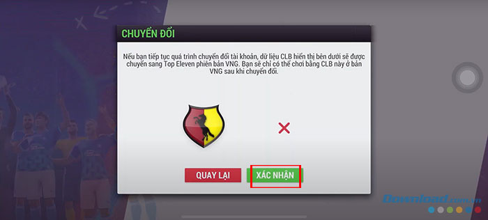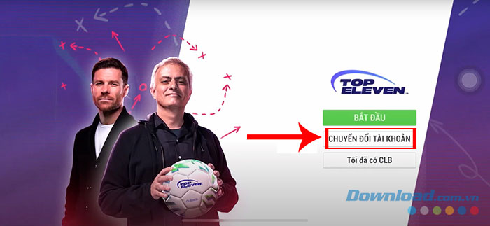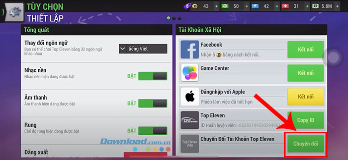 Bước 3: Nhấn nút Chuyển đổi tại mục Chuyển đổi tài khoản Top Eleven.