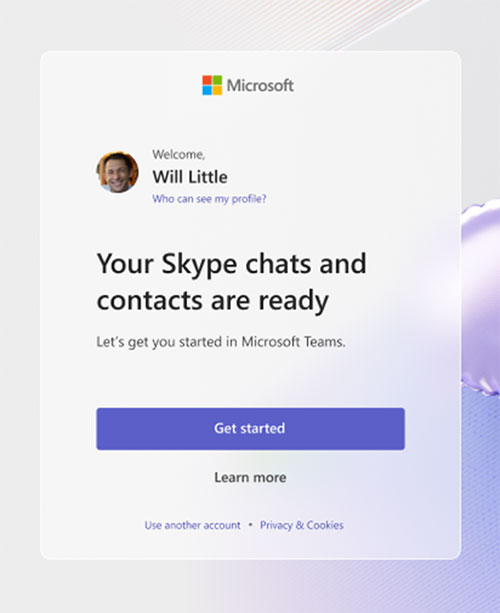 Đăng nhập vào Microsoft Teams Free trên bất kỳ thiết bị được hỗ trợ nào bằng thông tin đăng nhập Skype và danh bạ và cuộc trò chuyện của người dùng sẽ tự động được chuyển. Người dùng cũng sẽ nhận được thông báo trong ứng dụng Skype nhắc thực hiện hành động để di chuyển dữ liệu của mình.