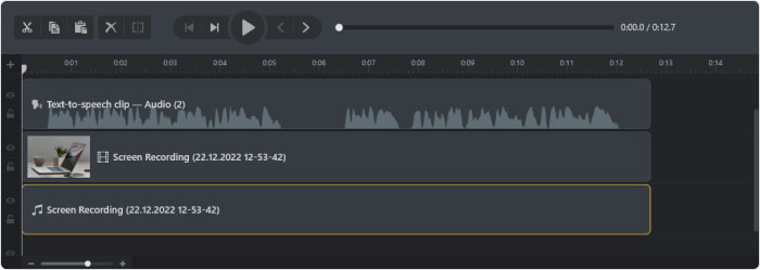 Bước 5: Sau đó, nhấp vào nút Insert nếu giọng đọc được thêm đã phù hợp với video. Giọng nói sẽ xuất hiện dưới dạng bản âm thanh mới với tên Text-to-speech clip — Audio.