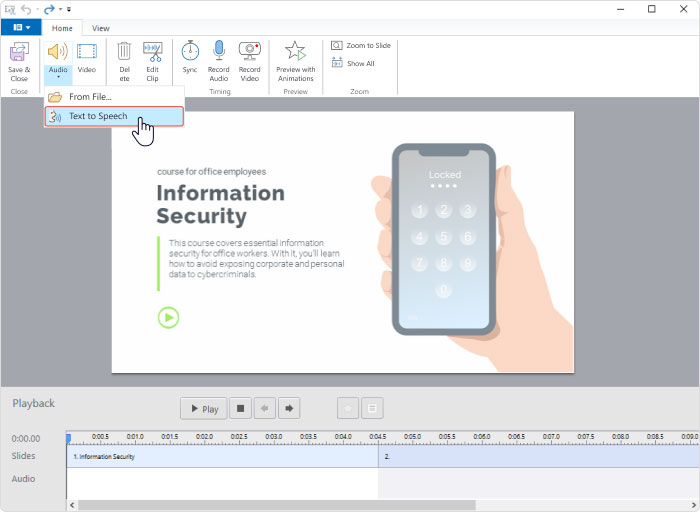 Bước 2: Nhấp vào Audio và chọn Text to Speech.