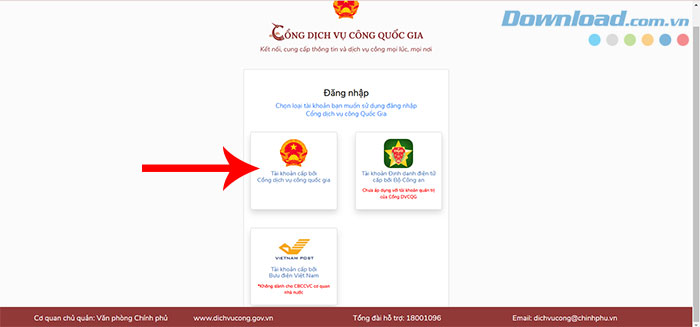 Bước 3: Tiếp tục nhấn vào Tài khoản cấp bởi Cổng dịch vụ công quốc gia.