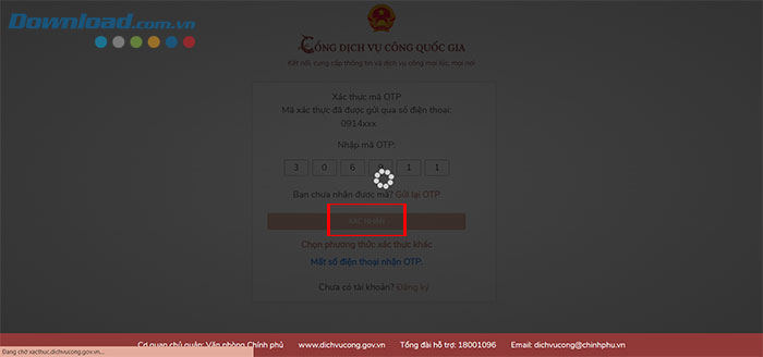 Bước 5: Nhập mã OTP được gửi về số điện thoại và nhấn Xác nhận.