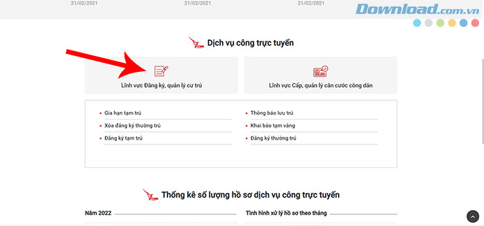 Bước 9: Chọn Lĩnh vực Đăng ký, quản lý cư trú.