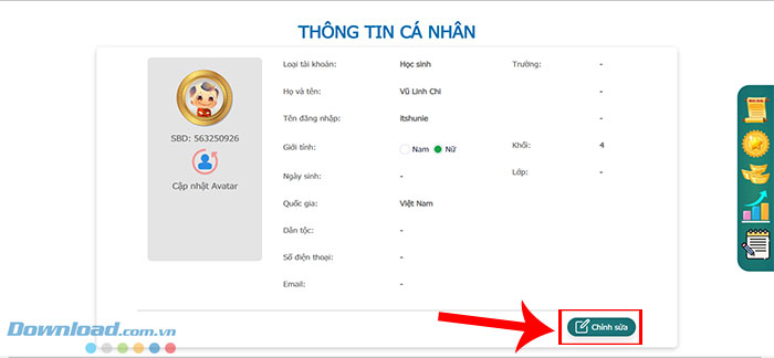Bước 3: Click vào Chỉnh sửa tại trang Thông tin cá nhân.