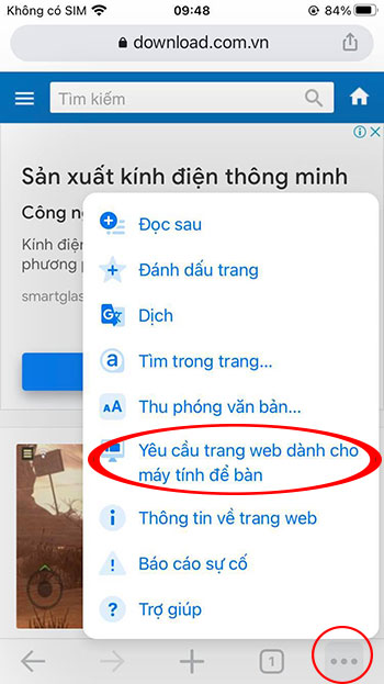 Lưu ý: Bạn phải kéo xuống phía dưới và chờ để dòng chữ: Yêu cầu trang web dành cho máy tính để bàn hiển thị.