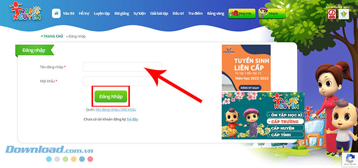 Bước 2: Nhấn nút Đăng nhập ở đầu giao diện trang chủ Trạng Nguyên.