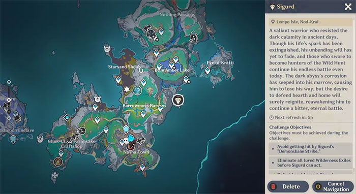 Sigurd chắc chắn là boss ngầu nhất được thêm vào trong Genshin Impact Luna I. Đây là một Local Legend ở Nod-Krai, chỉ có thể tiếp cận sau khi người chơi hoàn thành một nhiệm vụ ẩn. Nhiệm vụ này khá khó tìm, chỉ xuất hiện sau khi người chơi thu thập đủ ba vật phẩm đặc biệt trên đảo Lempo Isle. Sigurd không chỉ có ngoại hình cực chất mà còn là một thử thách lớn. Trong bài viết này, hãy cùng khám phá cách tìm và đánh bại Sigurd tại Nod-Krai trong Genshin Impact Luna I.